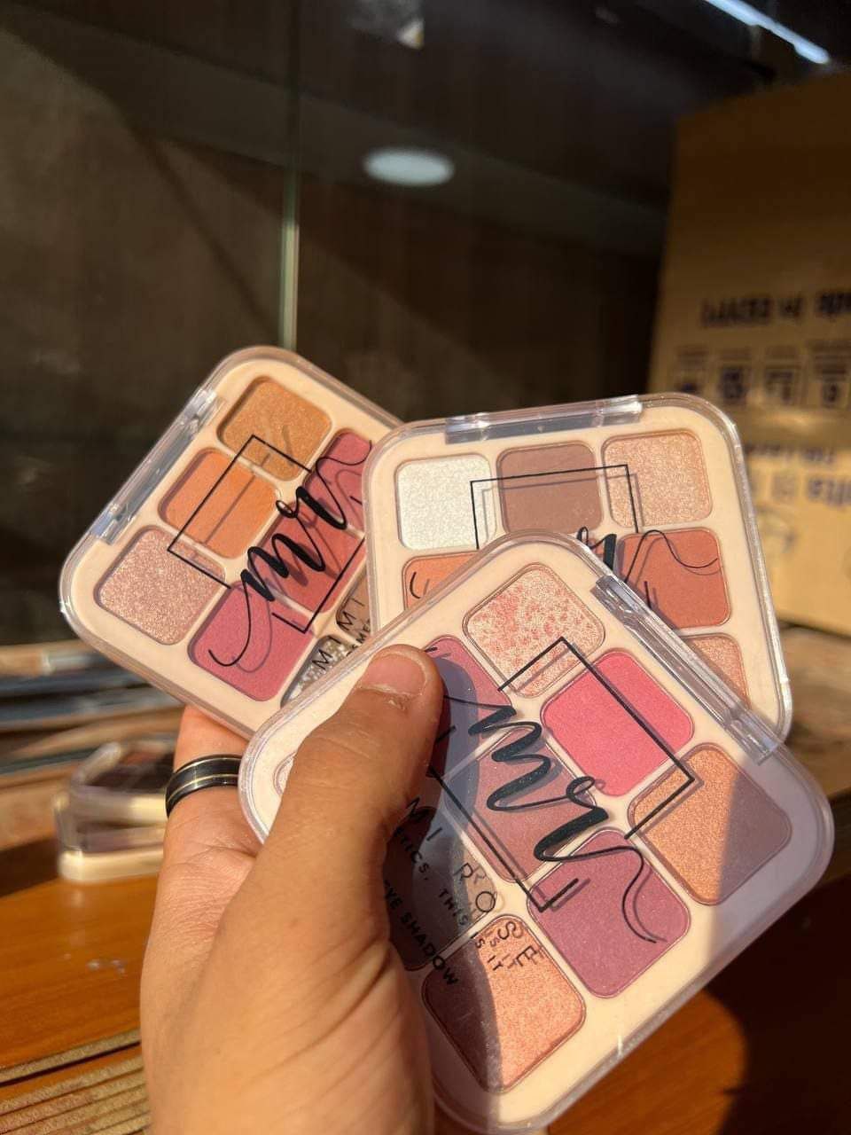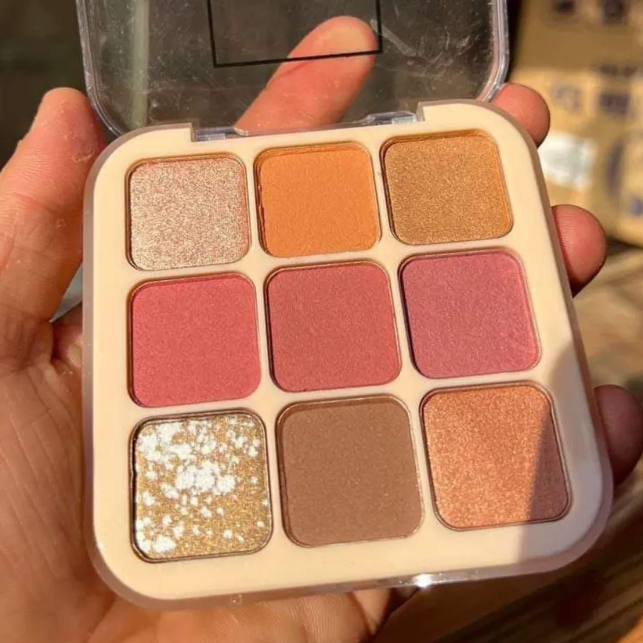 باليت عباره عن 9 لون .. 4 درجات شيمير و 5 مط والبيجمنت عالي جداااا