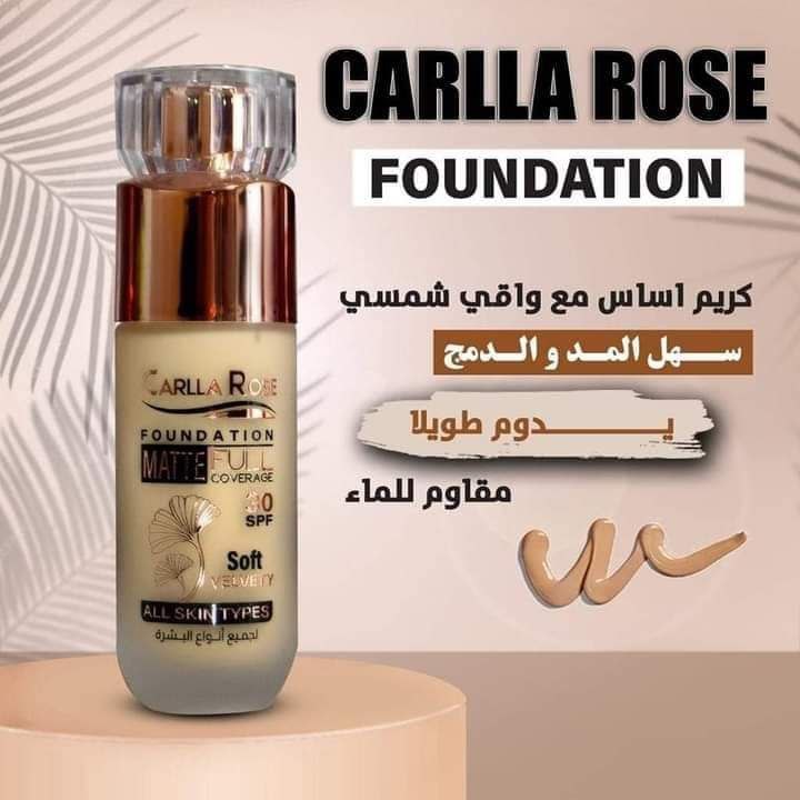 من اجمد الفوندشين الي بتسأل علي فونديشن كارلا روز كريم اساس تغطيه عاليه كارلا الجديد الزجاج وجوده عاليه , كريم أساس خافى لعيوب البشره وتوزيع عالى كريم اساس كارلا تغطيه عاليه وخافي للعيوب فونديشن ماط